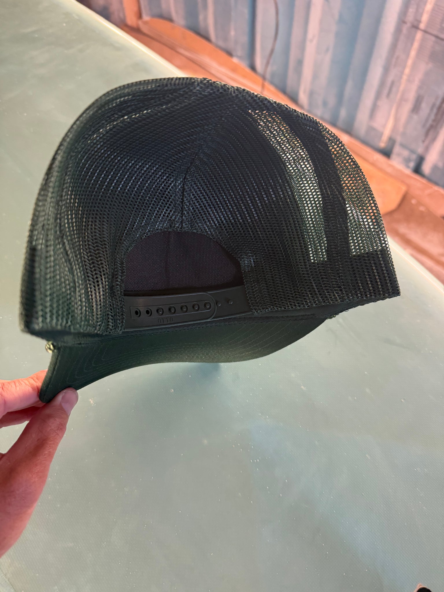 Golf roper hat with mesh back. Front crown is medium height. Sits lower than foam trucker and higher than a dad hat.